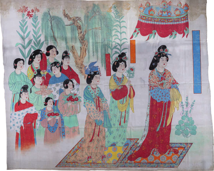 1943年,张大千带着摹仿作品在兰州、成皆等地展出。展览平直激动了1944年国立敦煌艺术参议所(现敦煌参议院)的建树,抑制了莫高窟近400年的无序景况。尔后,他又将敦煌艺术带到印度、法国、泰国等地,让这一东方瑰宝走向世界,更引发了段文杰等学者的参议关心。