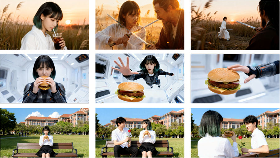 一是SekoIDX破解了“多剧集、跨分镜变装一致性艰巨”。传统的生成才略要么会导致变装与参考图如同“复制粘贴”而穷乏活泼性,要么会因新的动作或色调提示导致“面庞全非”。SekoIDX通过在扩散模子的高噪阶段引入“负参考图”,既保证变装在多剧集、跨分镜中的一致性,又幸免实质与参考图过度通常,同期在反映不同色调、姿态、场景等提示时如故能保握高度理会。