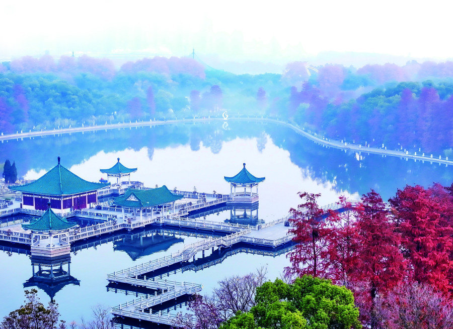 “天时东说念主事日相催,冬至阳生春又来。” 图为湖北武汉东湖听涛景区的冬日现象。 新华社 发